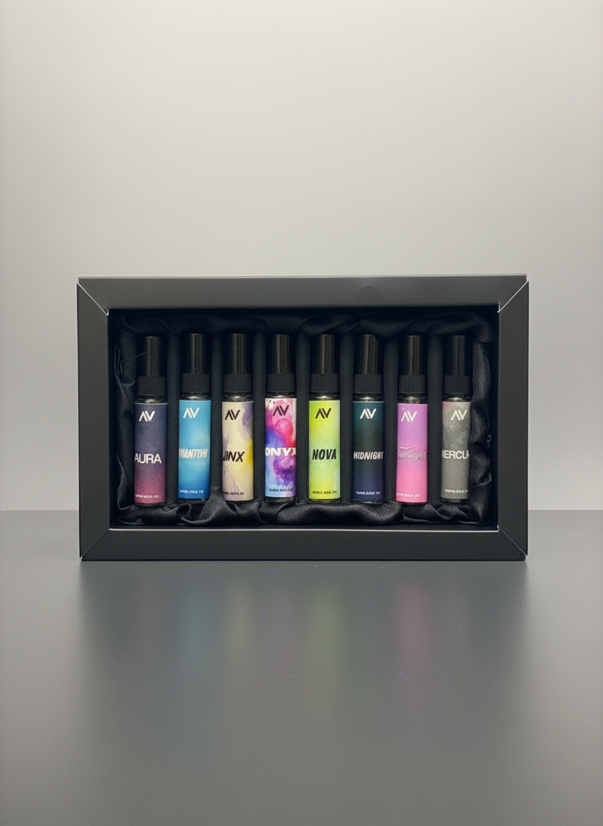 Experience the world of Aiva with our exclusive Discovery Set, featuring 5 ml testers of our signature fragrances. Each miniature is meticulously crafted to capture the essence of elegance, sophistication, and individuality. Perfect for exploring your favorites or discovering your signature scent, this set is designed for those who appreciate the art of fine fragrance. Presented in a sleek, luxurious box, the Discovery Set invites you to indulge your senses, one exquisite fragrance at a time.